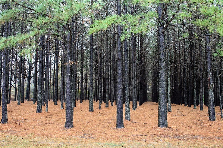 Tree plantations are not forests. Although they may look similar at a glance, the differences are vast. Large monocultures planted with the same tree species desirable for timber have very little biodiversity of animals, plants, fungi, and microorganisms. These plantations are also much more susceptible to disease, pests, fire, and wind damage than forests with an enormous variety of species and old trees.