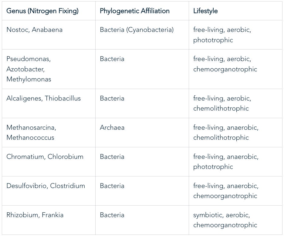 Nitrogen-fixing bacteria and archaea vary widely. Some require oxygen, while others thrive without it. Some harness energy from light (phototrophic), while others rely on chemical reactions (chemotrophic). Despite this diversity in form and function, all of them use a shared enzyme complex called nitrogenase, which enables the conversion of atmospheric nitrogen gas (N₂) into ammonia (NH₃).